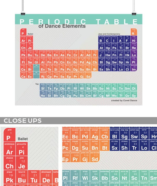 Covet DanceOriginal price $ 15.00 - Original price $ 15.00Original price$ 15.00$ 15.00 - $ 15.00Current price $ 15.00NEW DESIGN! All of the major dance elements are incorporated into our "dancey" version of the Periodic Table. Our 18" X 24" high quality poster is...