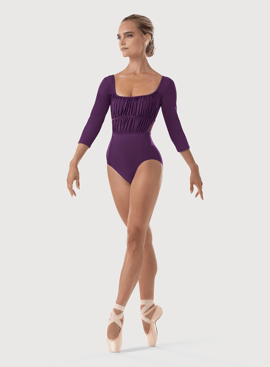 Bloch L4106B Zoey 3/4 Sleeve Leotard It's a triple threat: comfort, style, and function! Don't compromise on any of the three with this 3/4 sleeve leotard.