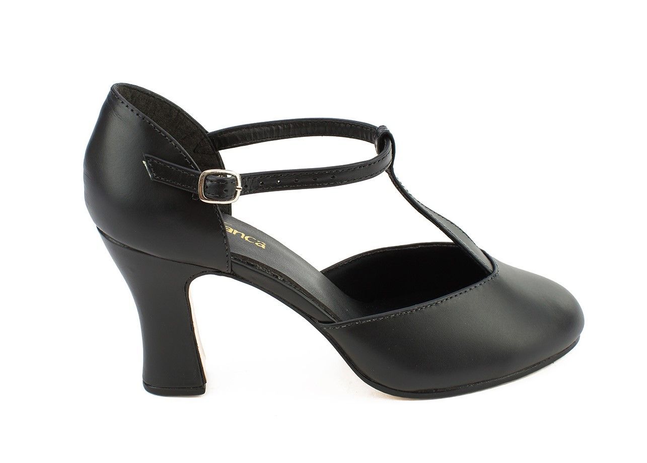 Beautiful 3" t-strap heel in smooth leather. The internal heel brace will be sure to keep you secure while you put your sticks to the test.