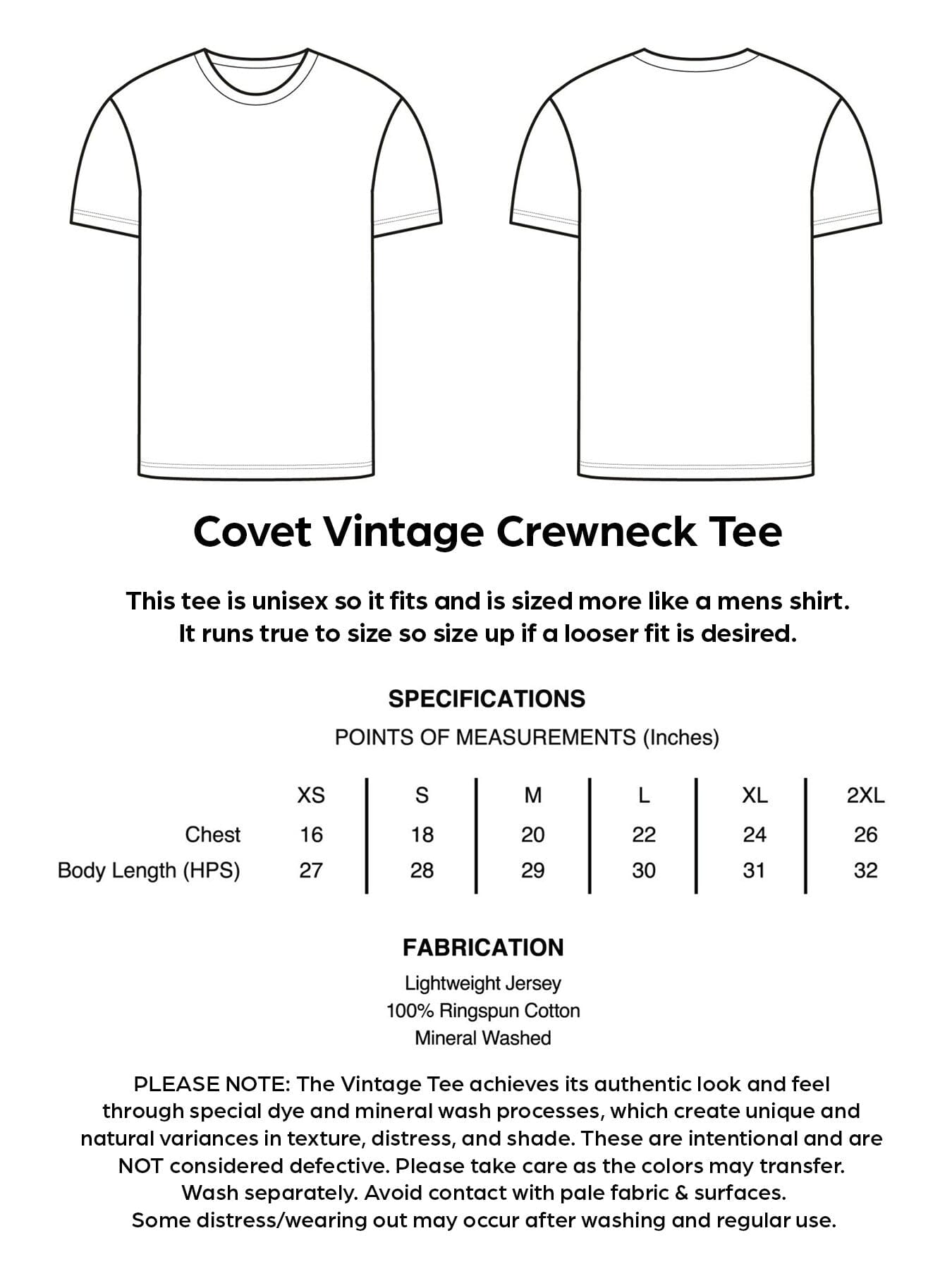 PLEASE NOTE: This vintage tee achieves its authentic look and feel through special dye and mineral wash processes, which create unique and natural variances in texture, distress, and shade. These are intentional and are NOT considered defective. Please take care as the colors may transfer. Wash separately. Avoid contact with pale fabric & surfaces, and follow our care instructions carefully. Some distress/wearing out may occur after washing and regular use.