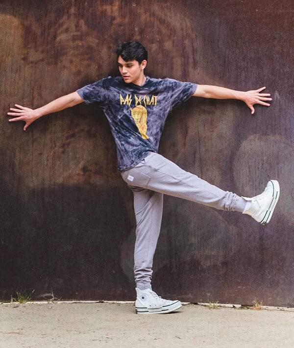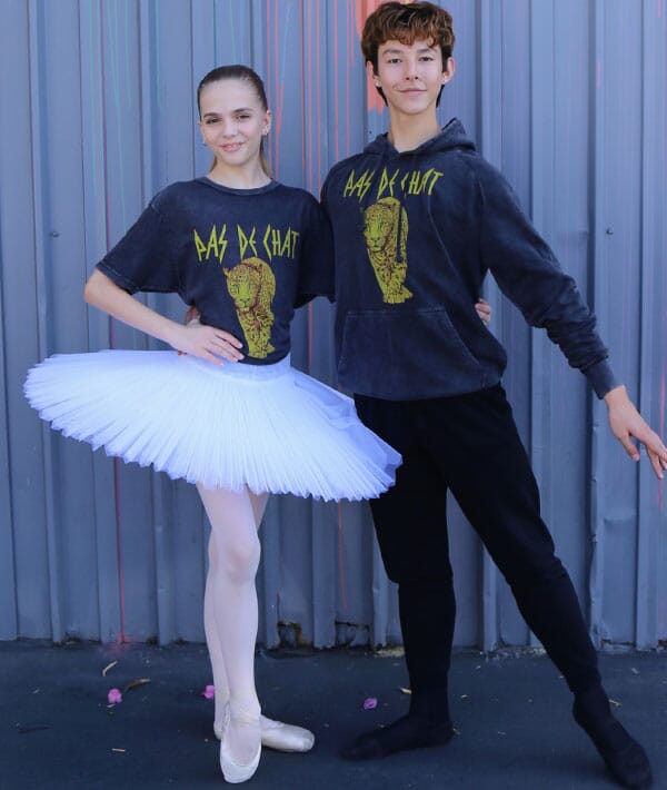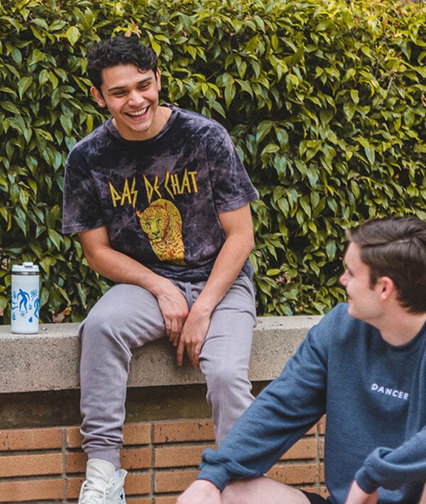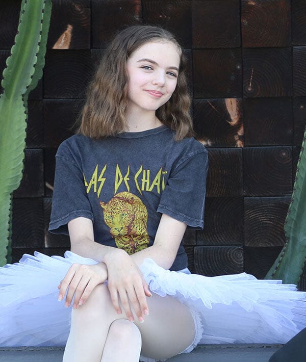 Our dance-inspired twist on the classic 80s band tee. Dancers and ballerinas all know that Pas De Chat means “cat's step.” This "Leppard" print (see what we did there?) brings a serious attitude to this totally awesome dance t-shirt.