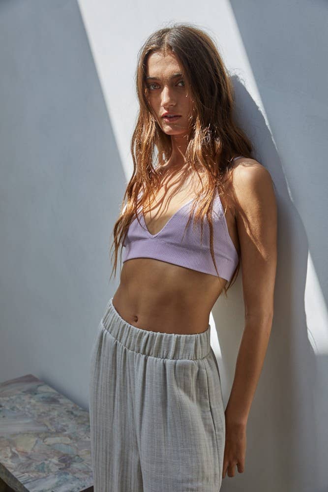 Knit Seamless Ribbed V-Neck Spaghetti Strap Brami Top A top that transitions effortlessly from day to night, pairing perfectly with any bottom. Say goodbye to wardrobe indecision - this brami has you covered (literally).