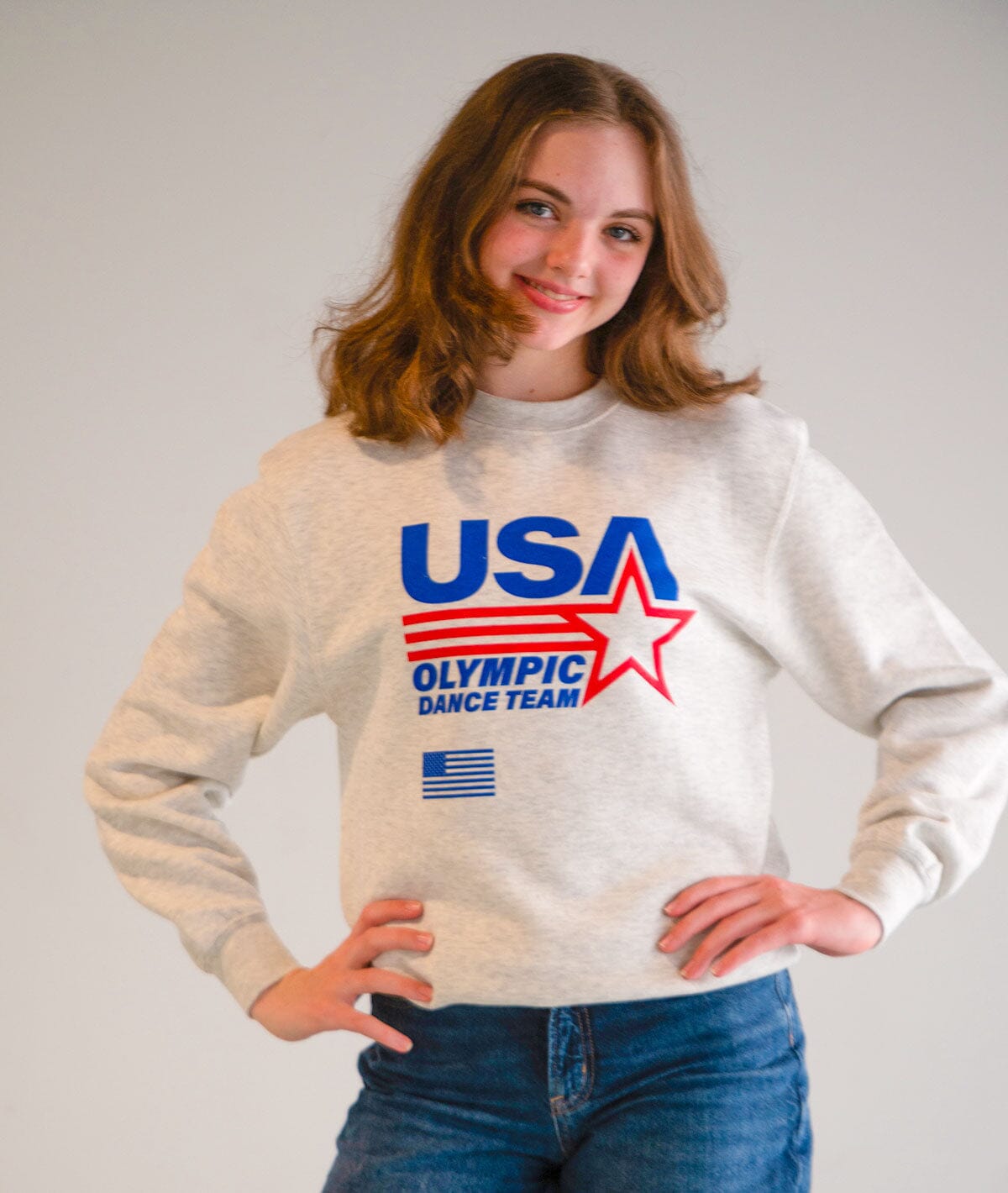 Show off your love for dance and your team spirit with this ultra-cozy USA Olympic Dance Team Crewneck Sweatshirt! Whether you're heading to class, lounging at home, or strutting your stuff at school, this comfy cover-up is perfect for dancers who dream big and dance even bigger.
