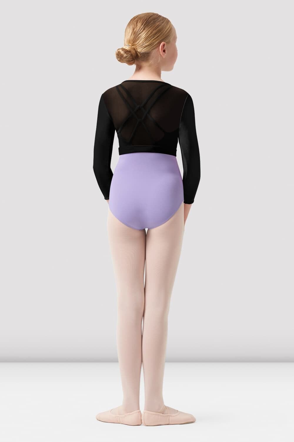 Girls Bea Mesh Back Wrap Top features a mesh back and elasticated underbust band with 3/4 sleeves with flocked floral detailing. Part of our Girls Bloch Rose Vine Collection featuring exquisite flocked floral detailing and delicate mesh panels. This darling collection offers a variety of styles suitable for any budding ballerina in three classical tones.