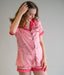 - Women's pajama set, short sleeve, splice edge, with button closure, with chest pocket