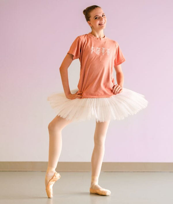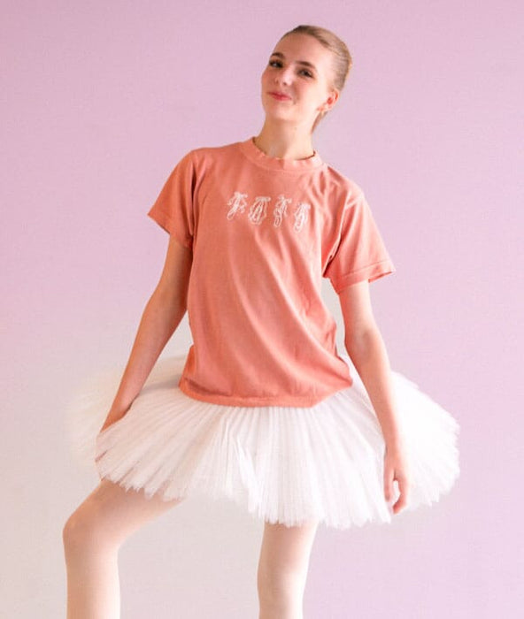 Ballet meets street style with our Four Pointes Luxe Tee in a soft salmon hue. Crafted from premium heavyweight cotton, this ultra-comfy tee is built to last while offering a relaxed, lived-in feel.