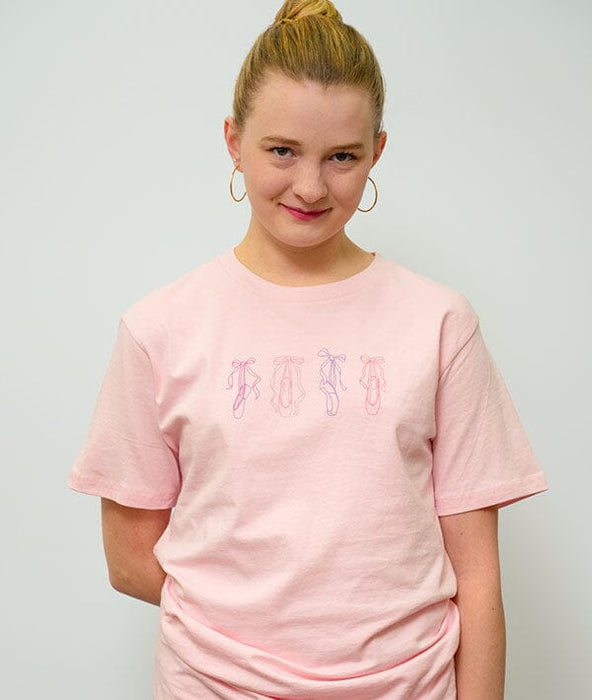 Show off your love of dance with this effortlessly chic ballerina tee. Featuring minimalist, hand-drawn illustrations of pointe shoes in gorgeous hues, this tee is perfect for dancers who eat, sleep, and breathe ballet (but also love a comfy outfit for post-rehearsal snack runs).