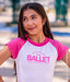 Monday, Tuesday, Wednesday, Thursday...seems like everyday is Just Another Day at the Barre! Whatever day it is, throw this cute BALLET cropped t-shirt on over your leo as you head to dance class and you're sure to turn heads. Made in a soft, cozy cotton with a close fit, this tee is available in XXS-XL to accommodate a wide range of ages.