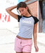 The Just Another Day at the Studio raglan cropped t-shirt has a cute, body-con fit, cropped hem, and color blocked sleeves. Available in XXS-XL, this is a must-have for dancers of all ages.