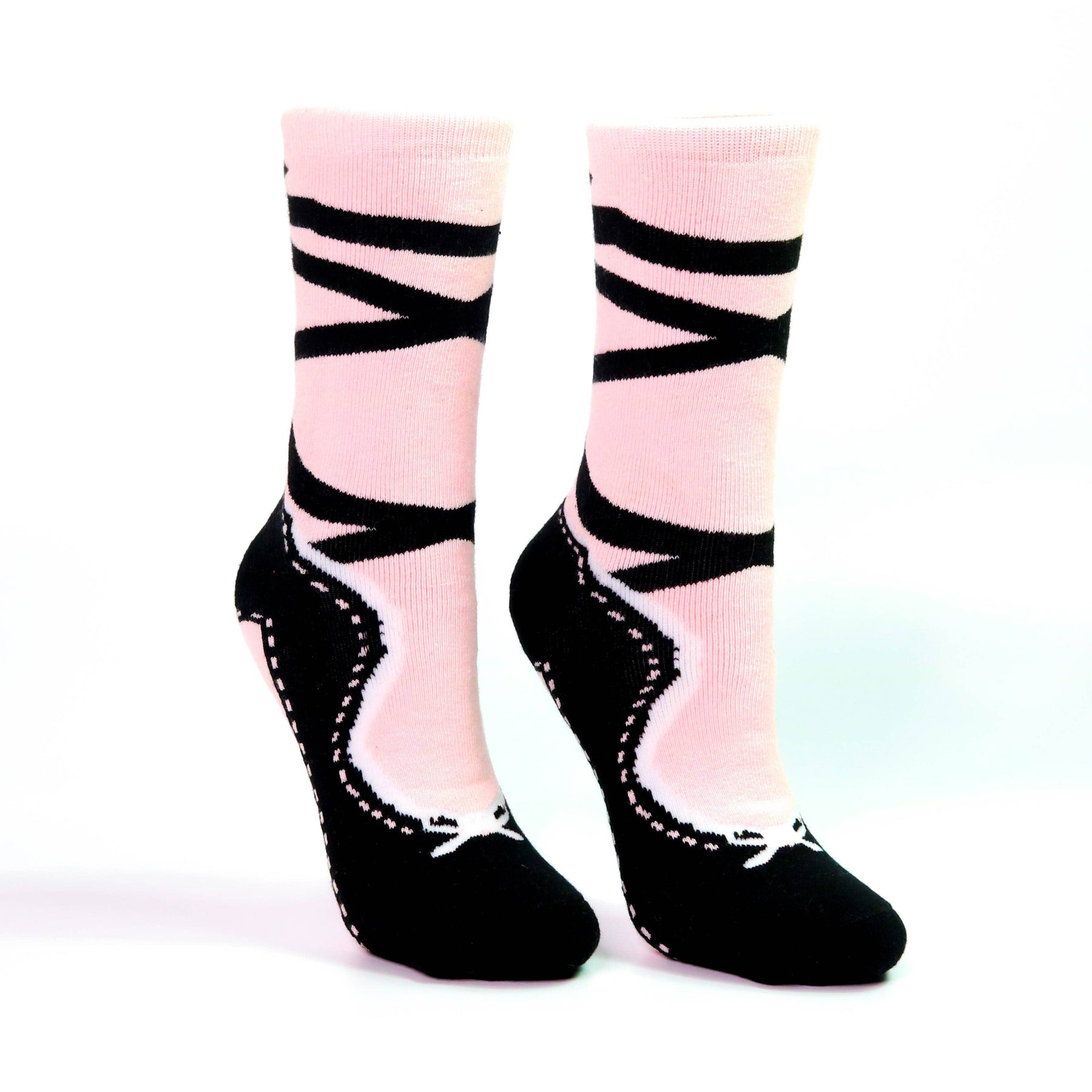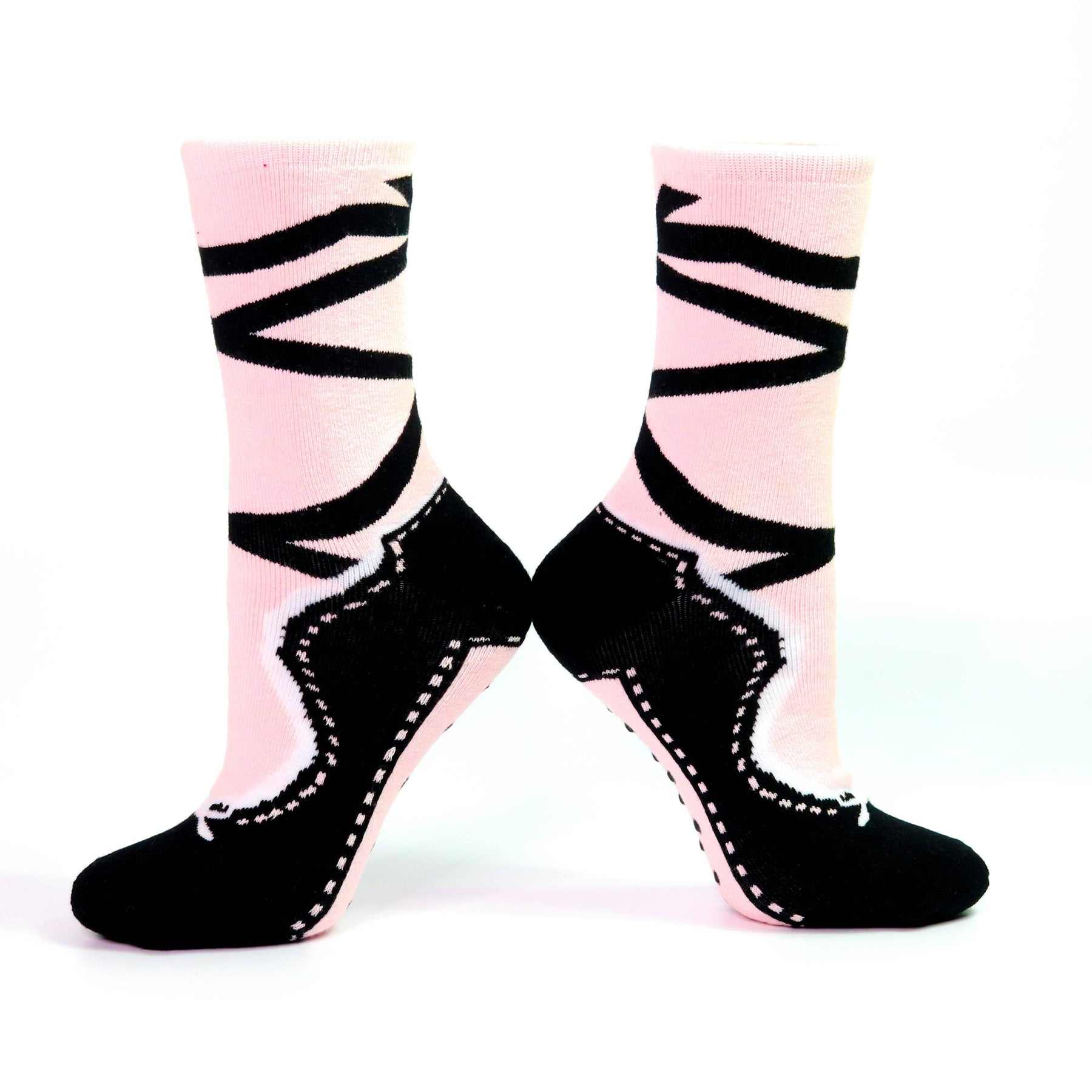 G-Sock: Pink Pointe Slipper Heavyweight Socks Be "opening curtain ready" all the time with these fun and fancy ballet slipper socks!! A great novelty gift, these ultra warm and adorable socks are fun and fancy in pink, black and white with rubberized tread on the bottom. Sure to be treasured by dancers of all ages, both young and young at heart.