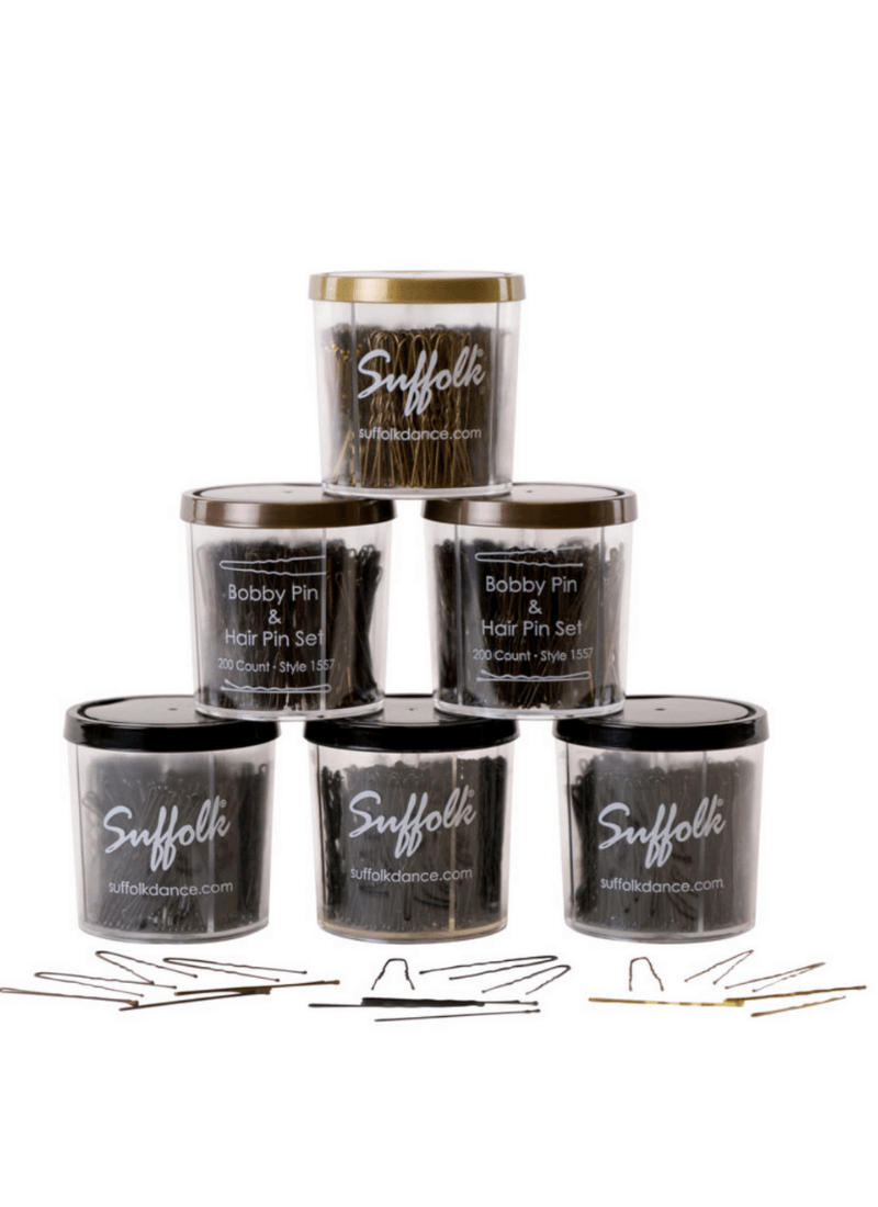 Bobby Pin and Hair Pin Set contains 100 bobby pins and 100 hair pins in a great package designed to last and last. The top of the container is the color of the pins, and can slide around for easy dispensing of product.