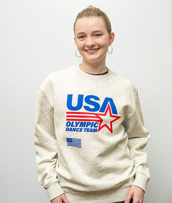 Show off your love for dance and your team spirit with this ultra-cozy USA Olympic Dance Team Crewneck Sweatshirt! Whether you're heading to class, lounging at home, or strutting your stuff at school, this comfy cover-up is perfect for dancers who dream big and dance even bigger.