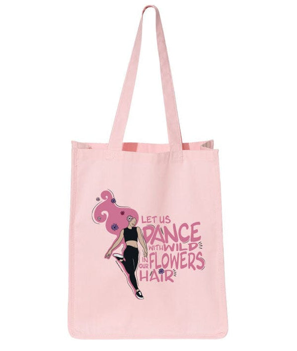 Go wild and dance among the flowers with this pink tote bag featuring a quote from Susan Polis Schutz. It's the perfect size for carrying your dance class must-haves.